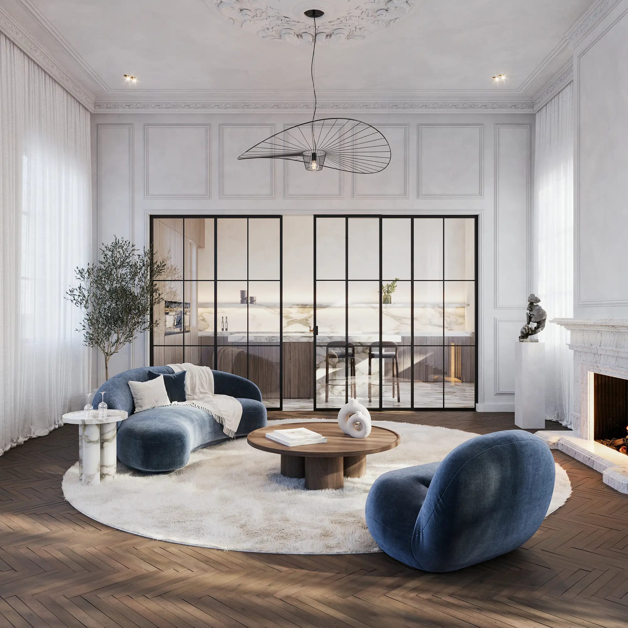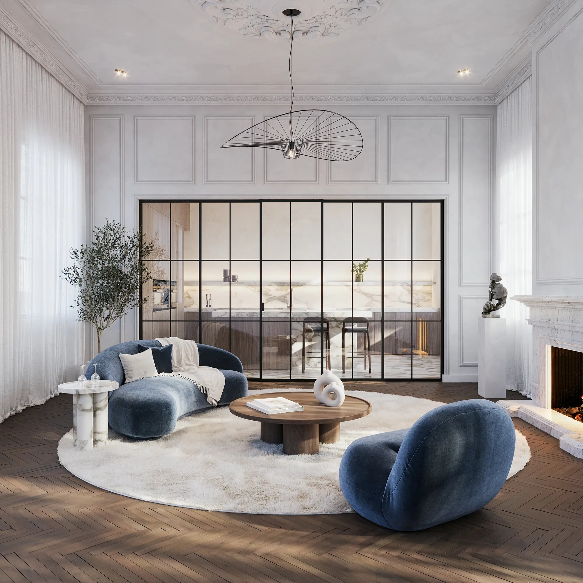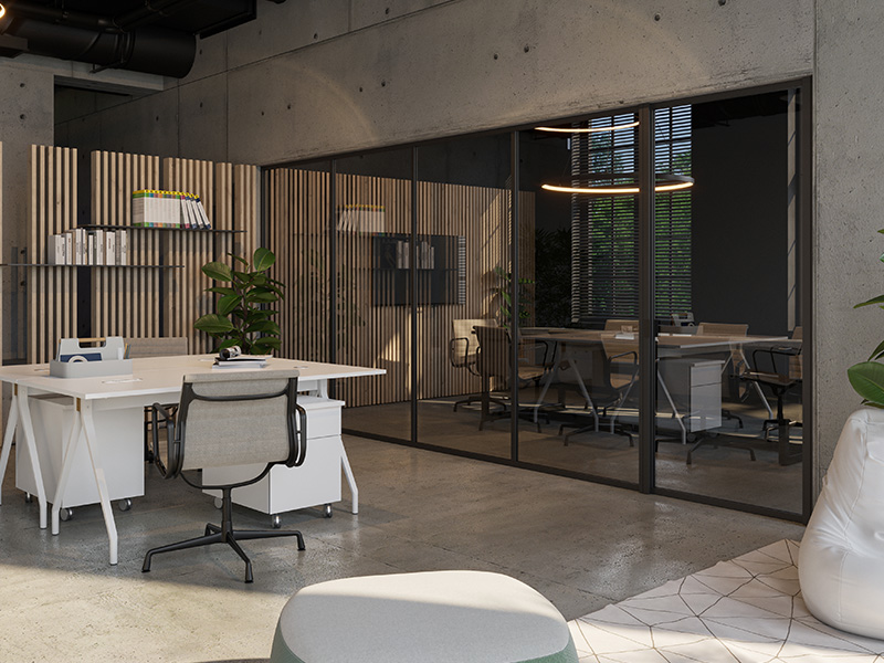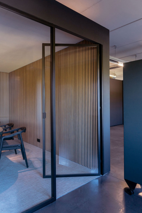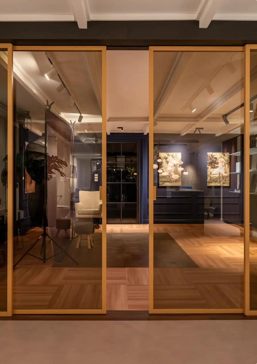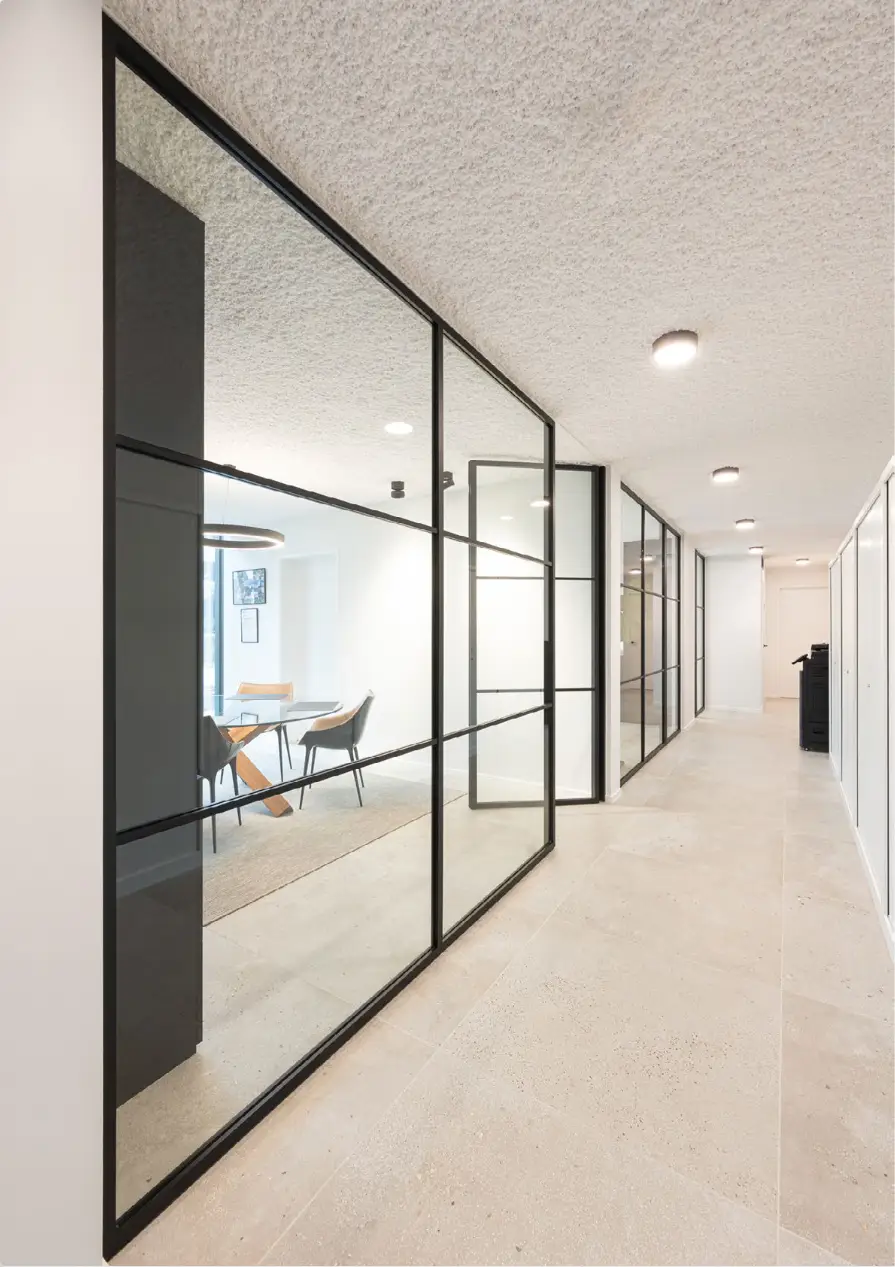 The corner profile makes it possible to connect walls and create entire rooms with Divina. No visible difference between the corner profile and standard profiles.