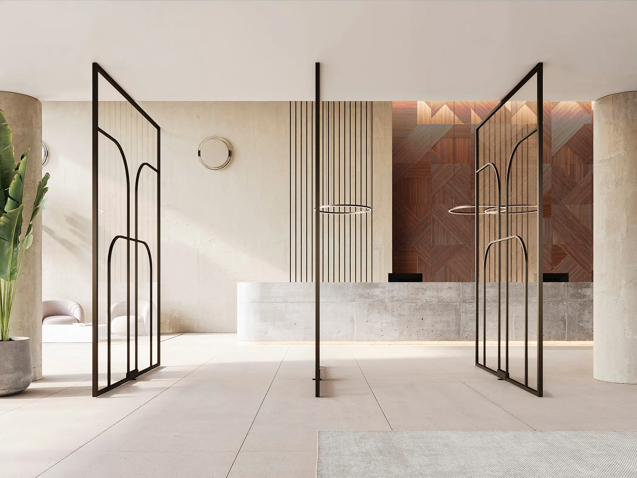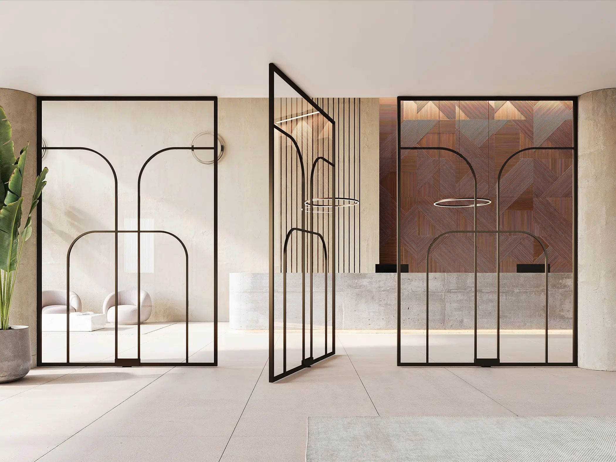 The curved and straight profile ranges offer a multitude of configuration possibilities. Each model adds value to the aesthetics of the premises without requiring any modification to the glass. Their position can be adjusted as required, and straight profiles can be adjusted directly on site.