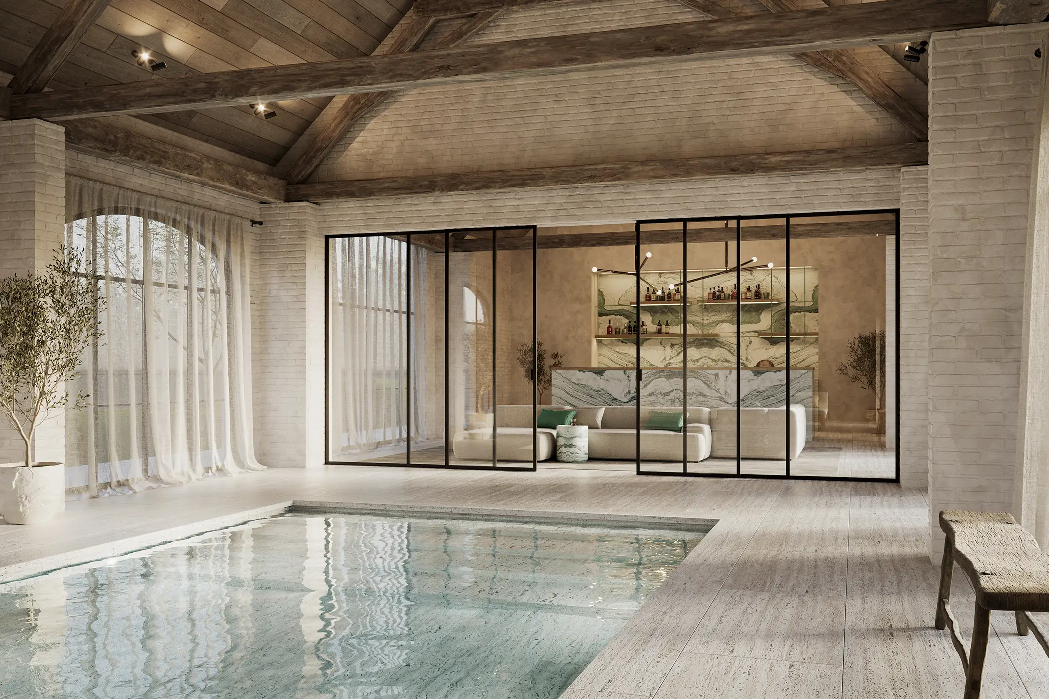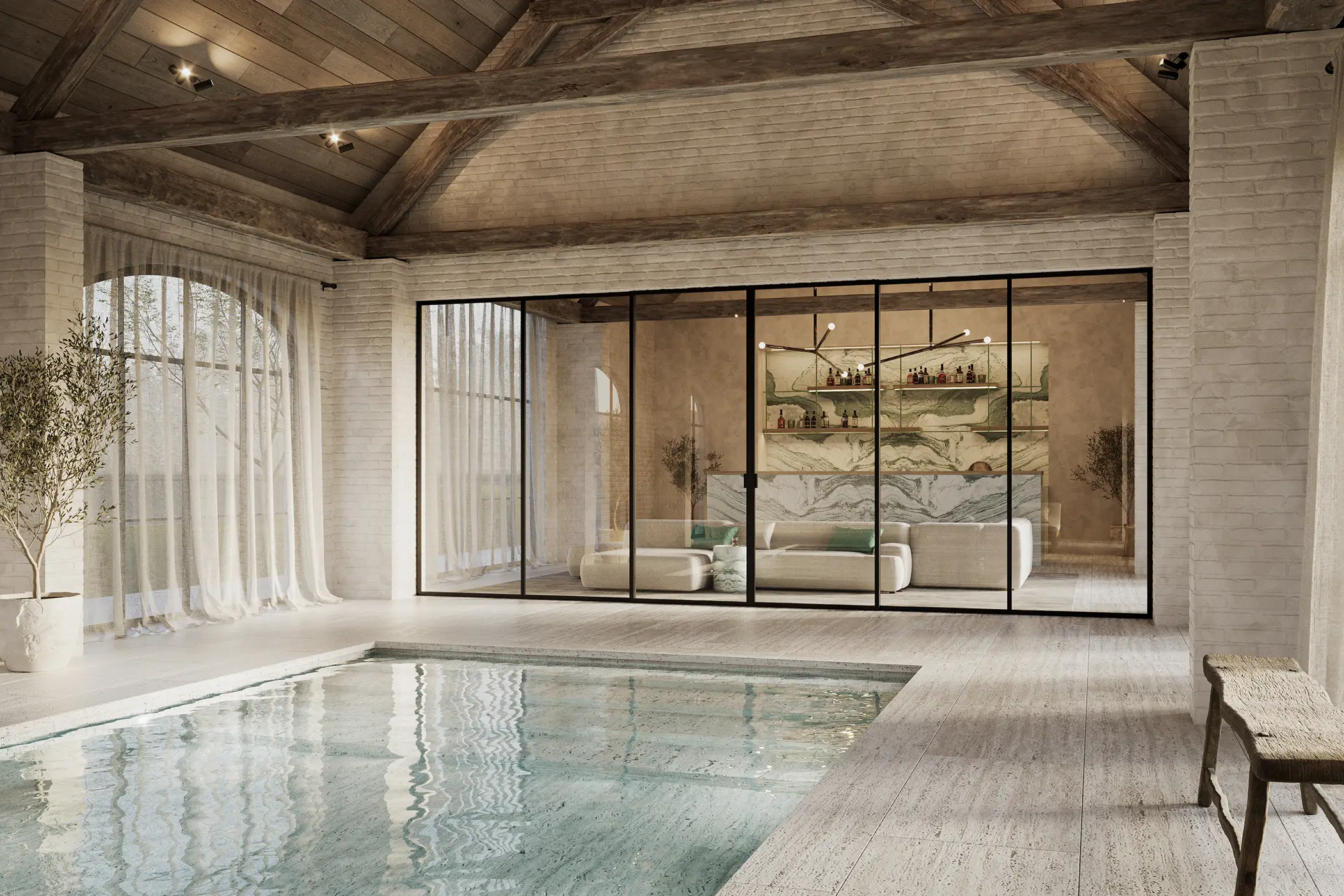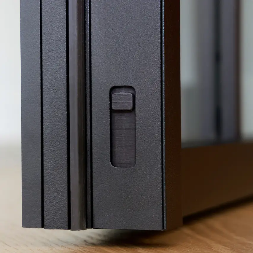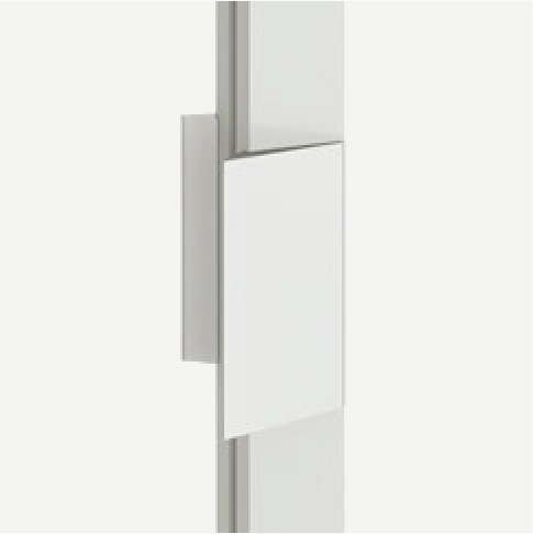 Minimalist profiles 35 mm wide with no visible hardware on either side, suitable for glass thicknesses between 8 mm and 10 mm.